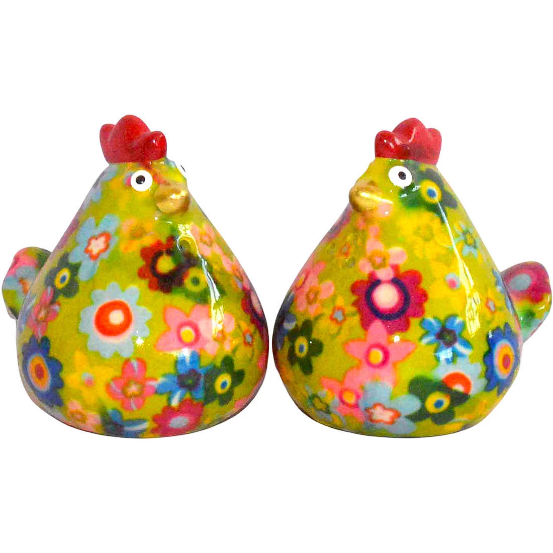Set Sale E Pepe Di Pomme Pidou. Oggetto Realizzato In Ceramica A Forma Di Pollo. Variante: Funky-Flowers-Springfrost. Dimensioni: L 6 X D 5.5 X H 6 Cm. La Referenza E’ 148-00530E