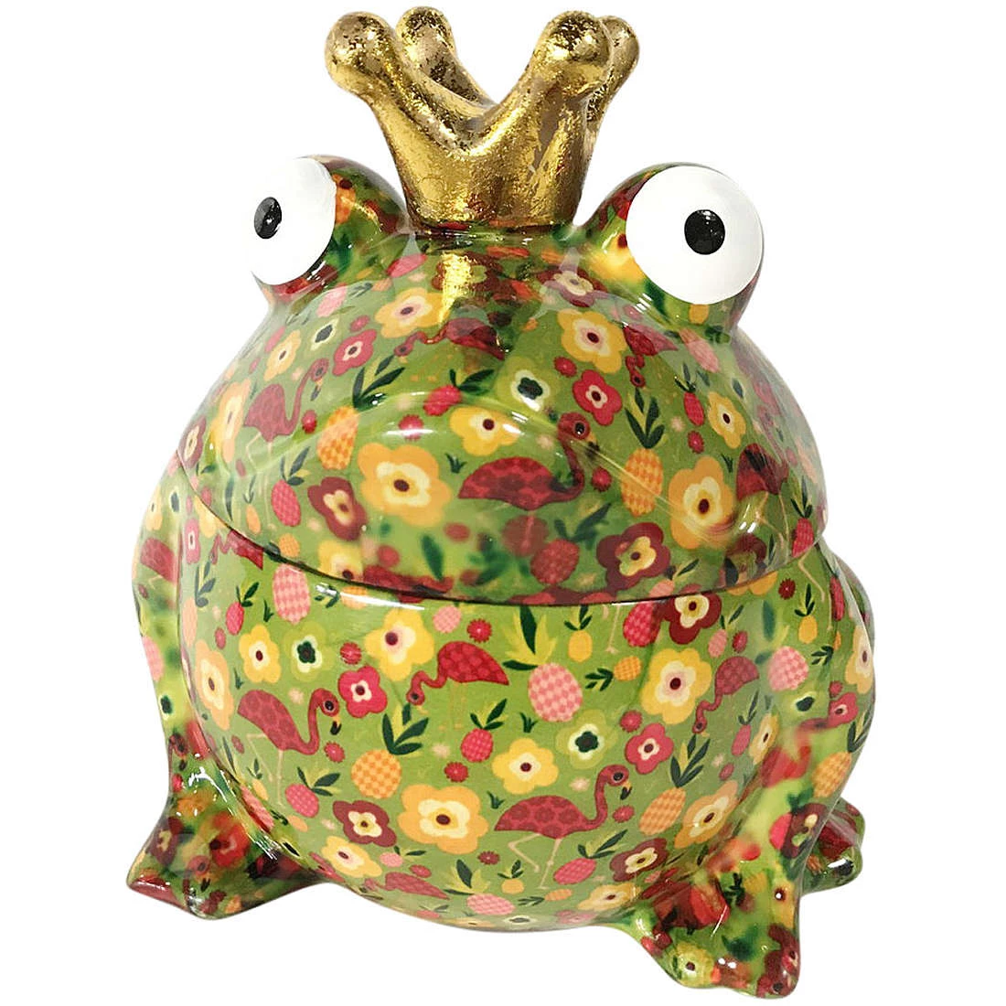 Barattolo Di Biscotti Di Pomme Pidou. Oggetto Realizzato In Ceramica A Forma Di Rana. Variante: Funny-Flamingos-Twistedgreen. Dimensioni: L 23.5 X D 20 X H 24.5 Cm. La Referenza E’ 148-00334C