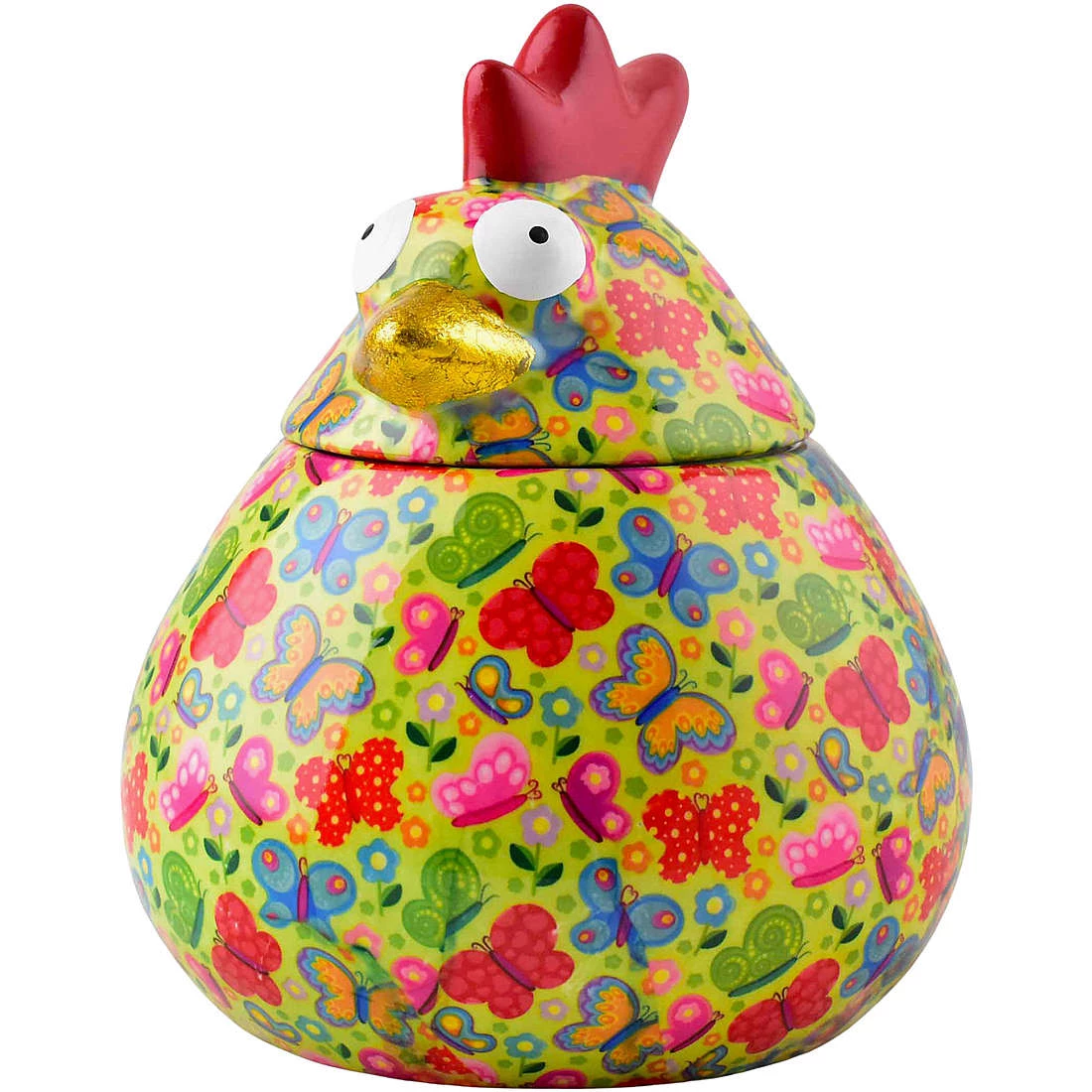 Barattolo Di Biscotti Di Pomme Pidou. Oggetto Realizzato In Ceramica A Forma Di Pollo. Variante: Dreamygreen-Sweet-Butterflies. Dimensioni: L 23 X D 19.5 X H 24 Cm. La Referenza E’ 148-00332E