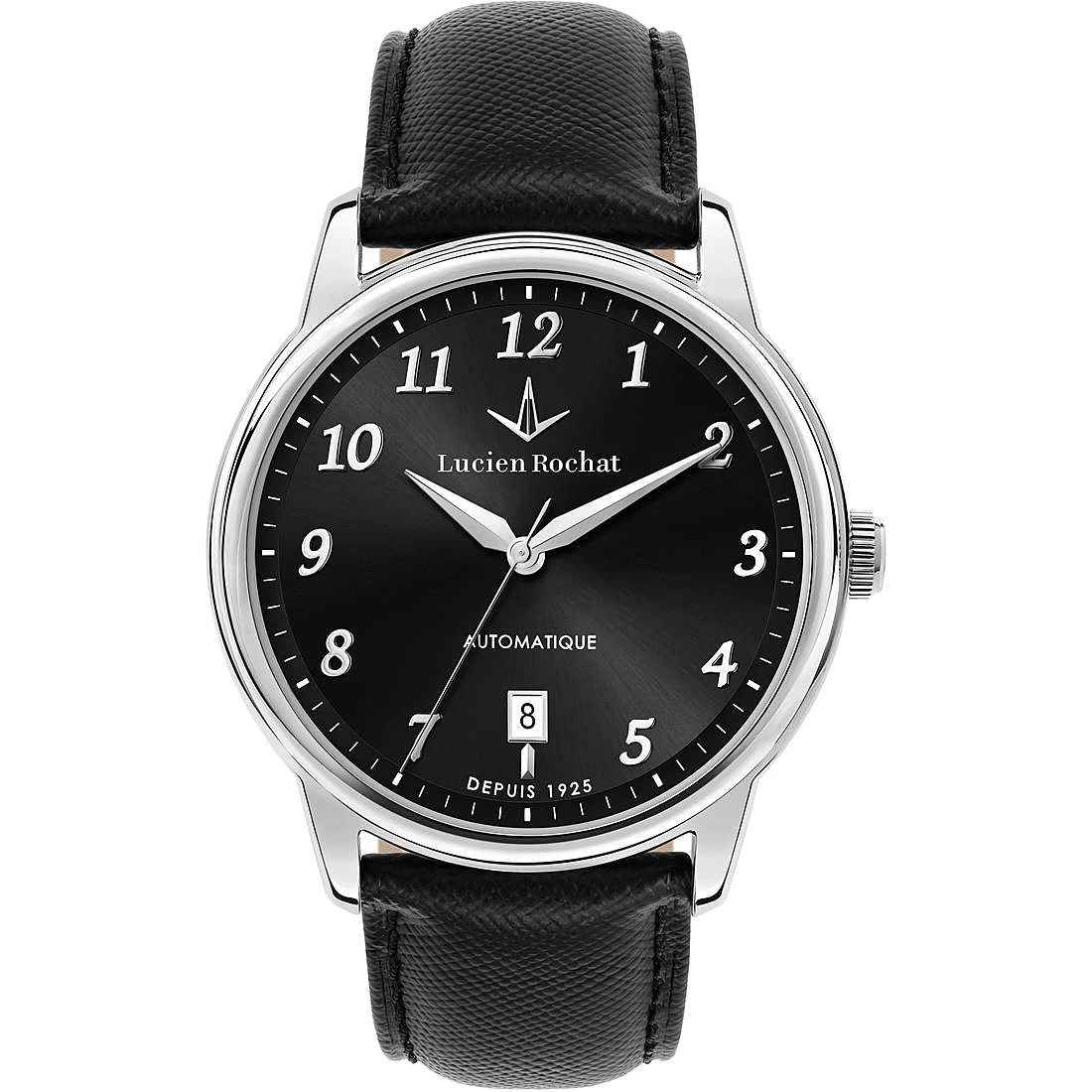 Orologio Automatico Da Uomo Di Lucien Rochat. Orologio Realizzato In Acciaio. La Cassa È Acciaio Lucida Da 42Mm. Il Quadrante È Di Colore Nero. Il Vetro Zaffiro. Bracciale In Pelle Di Colore Nero Con Fibbia Ardiglione. La Resistenza All’Acqua È 3 Atm. La Referenza È R0421116005.