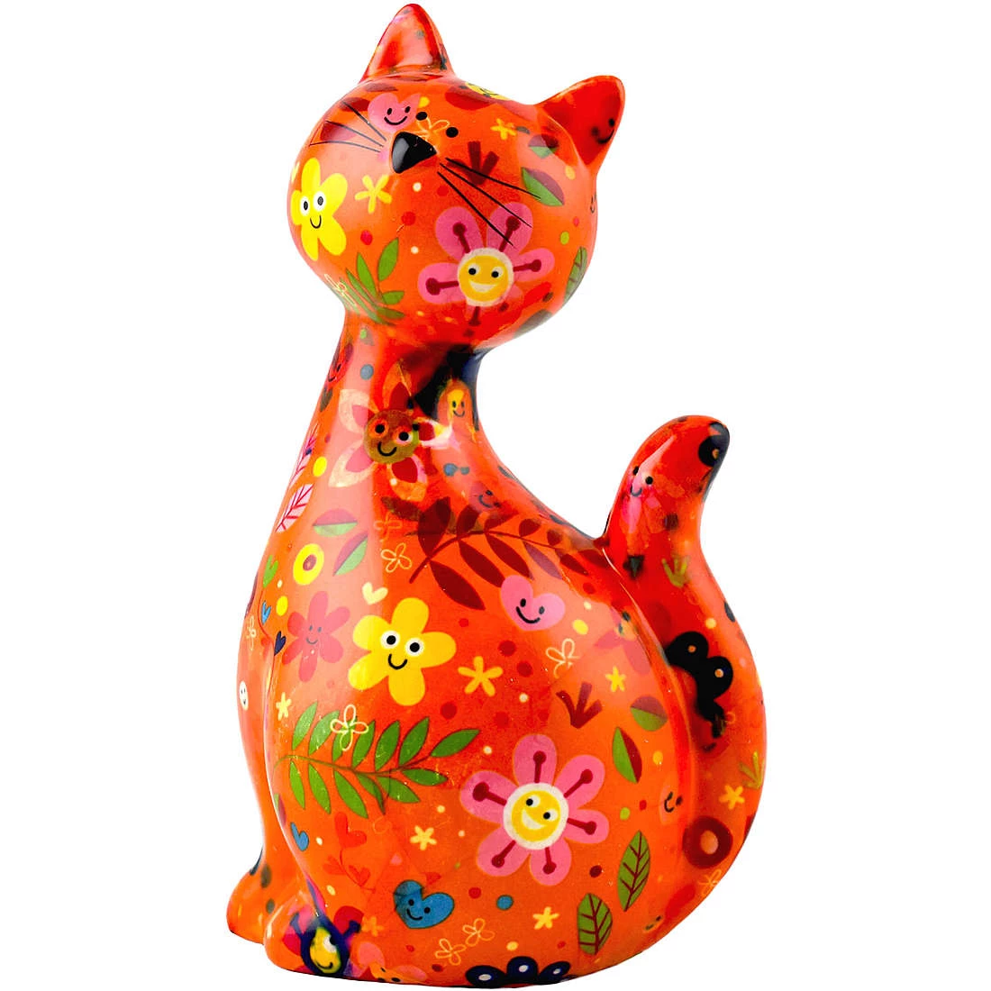 Salvadanaio Di Pomme Pidou. Oggetto Realizzato In Ceramica A Forma Di Gatto. Variante: Happy-Flowers-Orangesoda. Dimensioni: L 12.5 X D 10.3 X H 21.5 Cm. La Referenza E’ 148-00029H