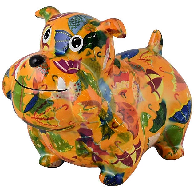 Salvadanaio Di Pomme Pidou. Oggetto Realizzato In Ceramica A Forma Di Bulldog Inglese. Variante: Its-Raining-Umbrellas. Dimensioni: L 18.95 X D 12.65 X H 15.5 Cm. La Referenza E’ 148-00535E