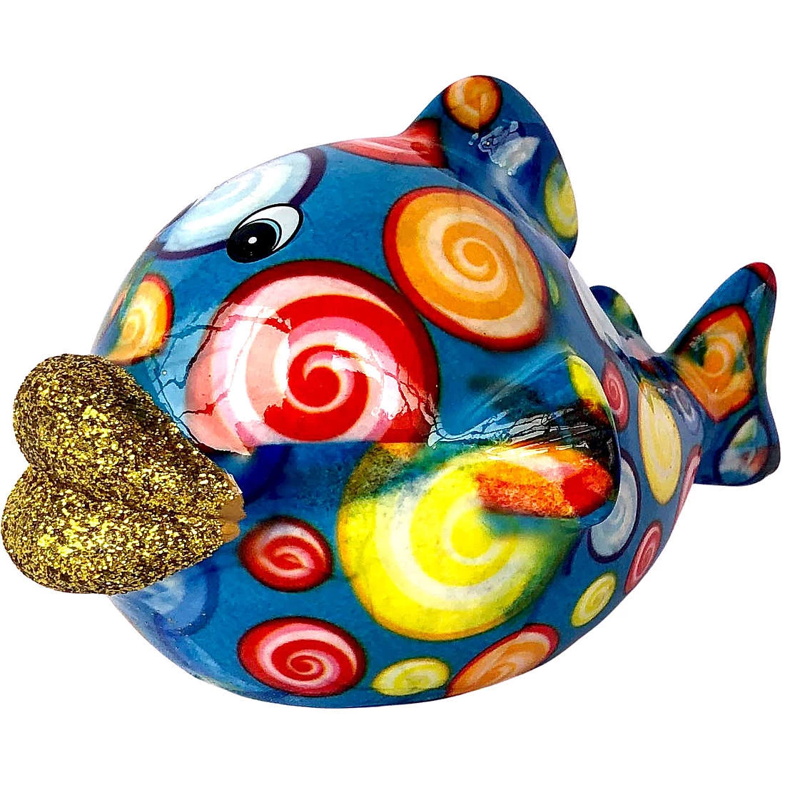 Salvadanaio Di Pomme Pidou. Oggetto Realizzato In Ceramica A Forma Di Pesce. Variante: Swirls-And-Curls-Moonstone. Dimensioni: Approx. L 13 X D 9 X H 7 Cm. La Referenza E’ 148-00680A