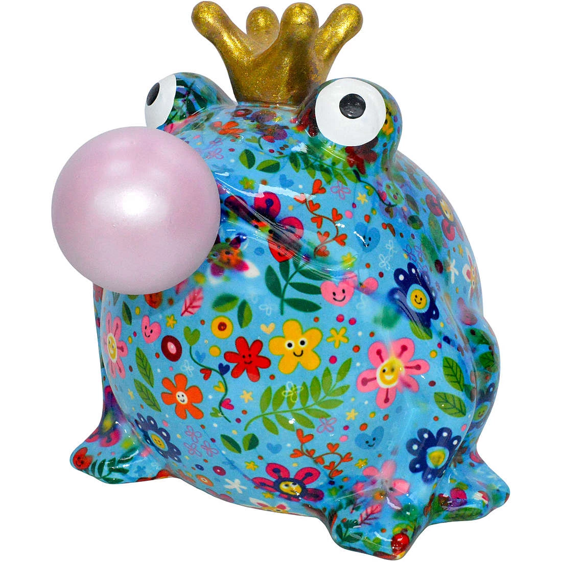 Salvadanaio Di Pomme Pidou. Oggetto Realizzato In Ceramica A Forma Di Rana. Variante: Happy-Flowers-Skyblue. Dimensioni: L 24.8 X D 24.5 X H 24.5 Cm. La Referenza E’ 148-00720A