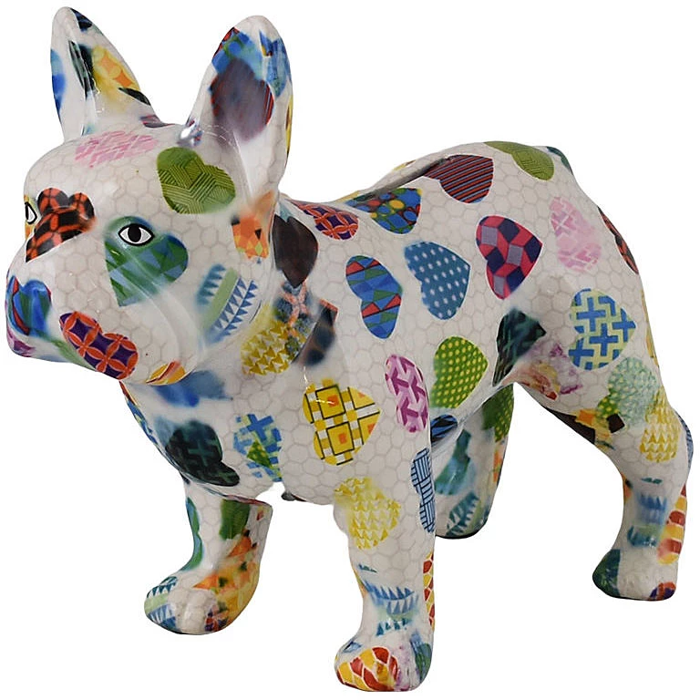 Salvadanaio Di Pomme Pidou. Oggetto Realizzato In Ceramica A Forma Di Bulldog Francese. Variante: Beezzy-Hearts-Sheerwhite. Dimensioni: L 22.5 X D 10.5 X H 19.2 Cm. La Referenza E’ 148-00510E