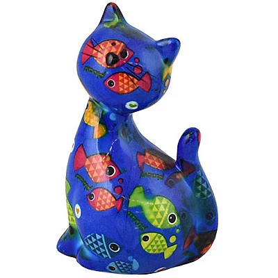 Salvadanaio Di Pomme Pidou. Oggetto Realizzato In Ceramica A Forma Di Gatto. Variante: Under-The-Sea-Marineblue. Dimensioni: L 8.2 X D 6.8 X H 13 Cm. La Referenza E’ 148-00569F
