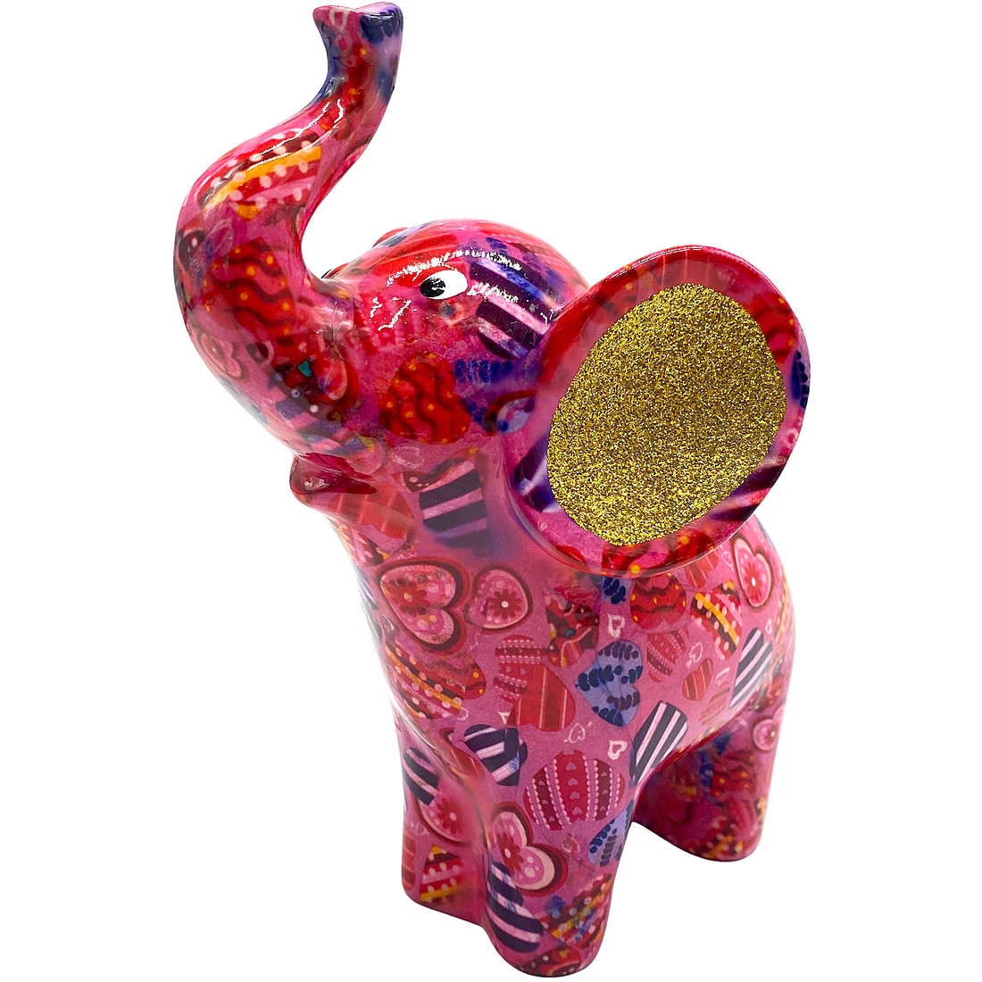 Salvadanaio Di Pomme Pidou. Oggetto Realizzato In Ceramica A Forma Di Elefante. Variante: Magicalpink-Hearts-In-Love. Dimensioni: L 16.5 X D 11 X H 19 Cm. La Referenza E’ 148-00509H