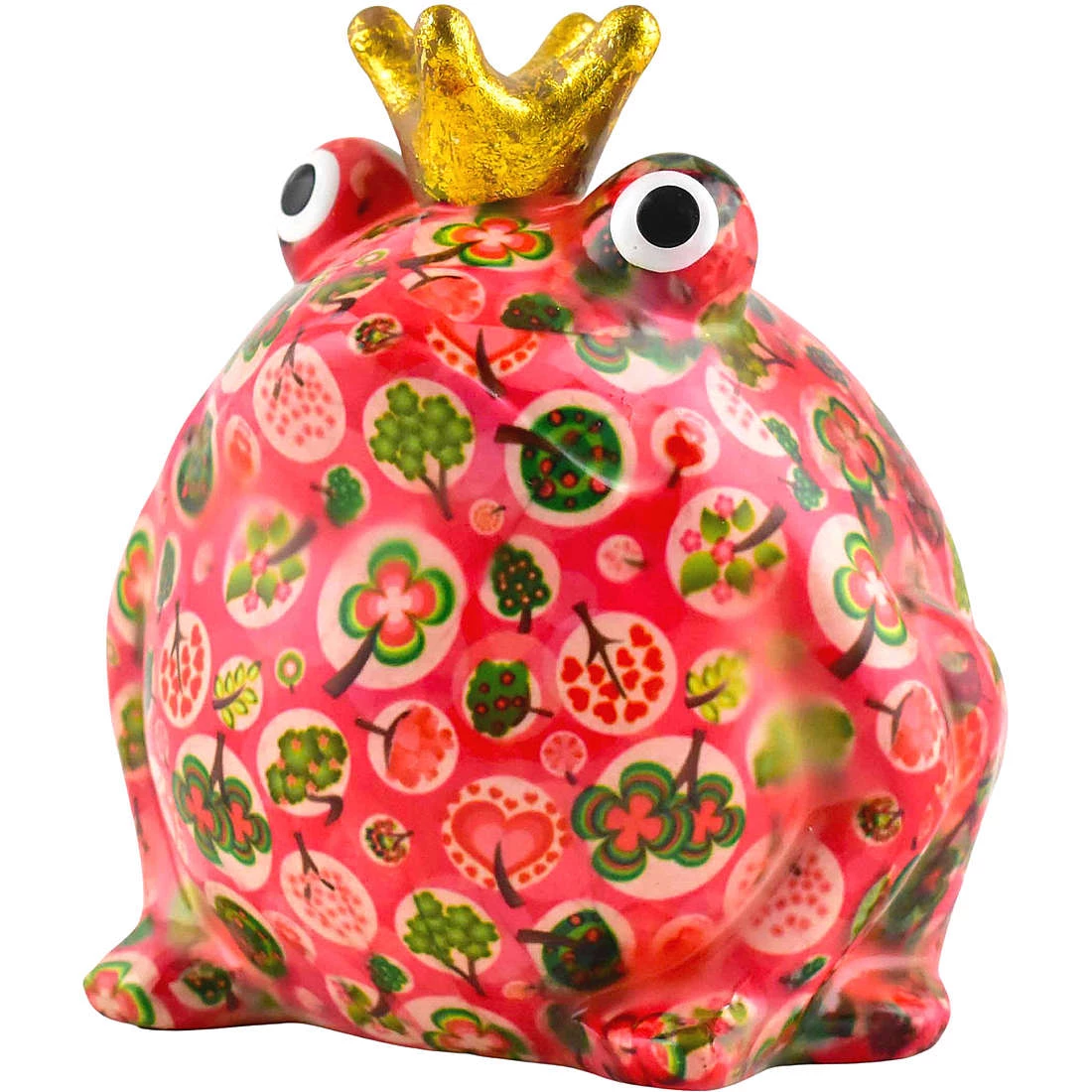Salvadanaio Di Pomme Pidou. Oggetto Realizzato In Ceramica A Forma Di Rana. Variante: Tree-Love-Poppypink. Dimensioni: L 18 X D 16 X H 14 Cm. La Referenza E’ 148-00754F