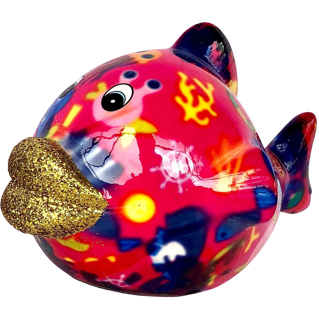 Salvadanaio Di Pomme Pidou. Oggetto Realizzato In Ceramica A Forma Di Pesce. Variante: Anchors-Aweigh-Rockyred. Dimensioni: Approx. L 13 X D 9 X H 7 Cm. La Referenza E’ 148-00680B