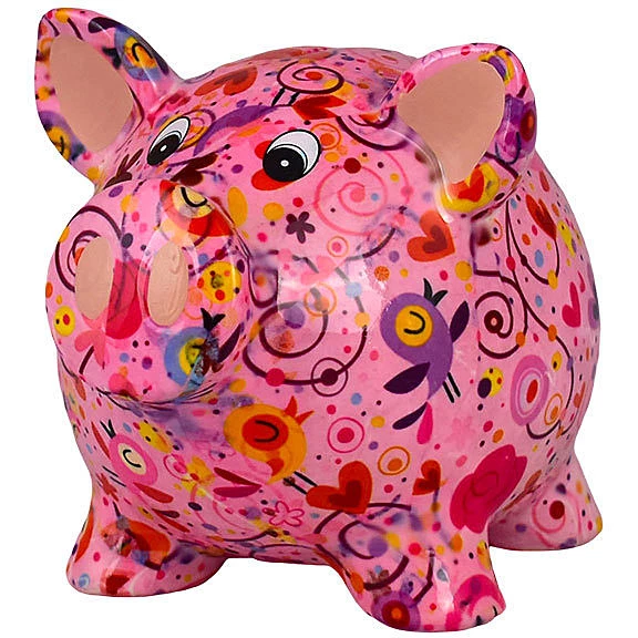 Salvadanaio Di Pomme Pidou. Oggetto Realizzato In Ceramica A Forma Di Maiale. Variante: Birds-In-Love-Pastelpink. Dimensioni: L 16.5 X D 13.5 X H 14.1 Cm. La Referenza E’ 148-00647D