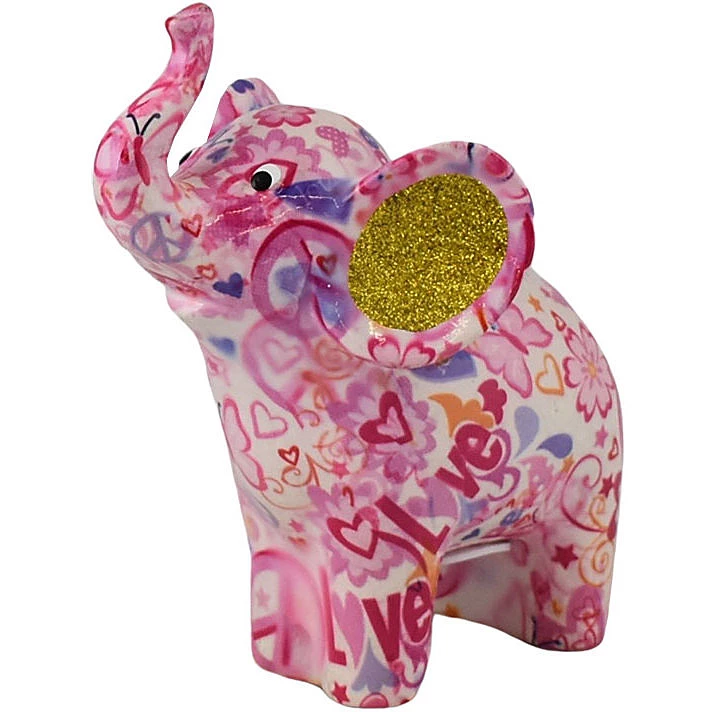Salvadanaio Di Pomme Pidou. Oggetto Realizzato In Ceramica A Forma Di Elefante. Variante: Love-And-Peace-Mistypink. Dimensioni: L 16.5 X D 11 X H 19 Cm. La Referenza E’ 148-00509E