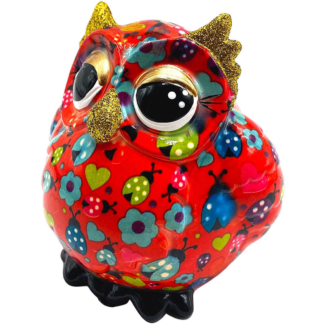 Salvadanaio Di Pomme Pidou. Oggetto Realizzato In Ceramica A Forma Di Gufo. Variante: Coccinelle-Rubyred. Dimensioni: L 10 X D 9 X H 10.2 Cm. La Referenza E’ 148-00627B