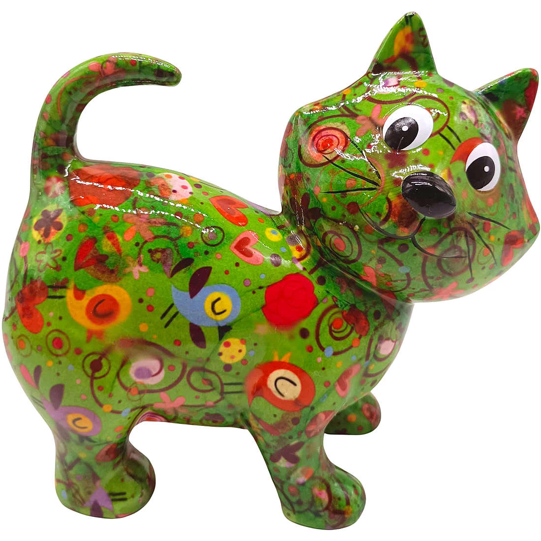 Salvadanaio Di Pomme Pidou. Oggetto Realizzato In Ceramica A Forma Di Gatto. Variante: Birds-In-Love-Funkygreen. Dimensioni: L 19.3 X D 9 X H 17.7 Cm. La Referenza E’ 148-00683H