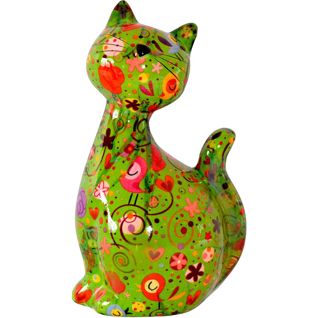 Salvadanaio Di Pomme Pidou. Oggetto Realizzato In Ceramica A Forma Di Gatto. Variante: Birds-In-Love-Funkygreen. Dimensioni: L 12.5 X D 10.3 X H 21.5 Cm. La Referenza E’ 148-00029P