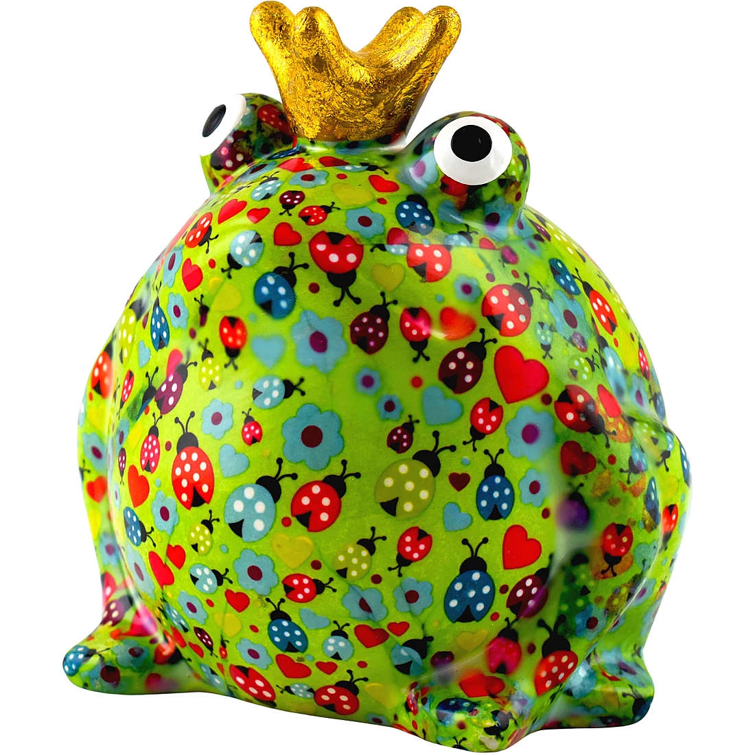 Salvadanaio Di Pomme Pidou. Oggetto Realizzato In Ceramica A Forma Di Rana. Variante: Coccinelle-Mossgreen. Dimensioni: L 18 X D 16 X H 14 Cm. La Referenza E’ 148-00716D