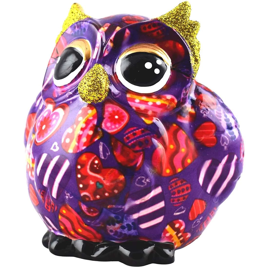 Salvadanaio Di Pomme Pidou. Oggetto Realizzato In Ceramica A Forma Di Gufo. Variante: Shockingpurple-Hearts-In-Love. Dimensioni: L 10 X D 9 X H 10.2 Cm. La Referenza E’ 148-00627F